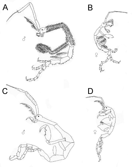 A and B: Drawing of Caprella mutica (from Platvoet et al 1995)