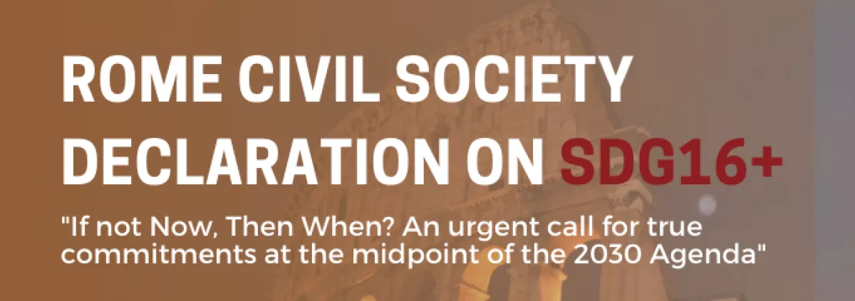 2023 Edition of the Rome Civil Society Declaration on SDG16+. Endorse the document here.Learn more at the website here. Files 2023 Rome Civil Society Declaration on SDG16+ Final.pdf129.43 KB